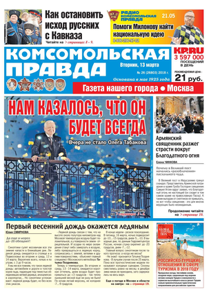 «Комсомольская правда» — информационная, общественно-политическая, развлекательная ежедневная газета, журналисты которой стараются быть интересными самому широкому кругу читателей. Безусловно, конек «КП» - скандальные репортажи, необычные истории из жизни, душераздирающие криминальные истории, светские новости, рассказы о звездах. Основные рубрики издания: «Картина дня», «Бизнес-пресс», «Клуб любознательных», «Кремлевская диета», «Мода», «КП-спорт», «Книжная полка», «Про рок», «Мнение», «Мужчина и женщина» и многое другое.