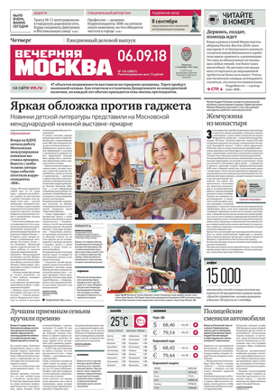 «Вечерняя Москва» — ежедневная российская вечерняя газета, старейшее из вечерних изданий в России, учрежденное в 1923 году. Выходит пять дней в неделю, кроме субботы и воскресенья. Отличается тем, что рассказывает о событиях еще не завершившегося дня. Оперативно освещает хронику и особенности жизни Москвы, охватывает все слои общества и большинство профессиональных и возрастных групп читателей.Издание представлено тремя выпусками – утренним ежедневным, вечерним (выходит три раза в неделю), еженедельным (выходит по четвергам).