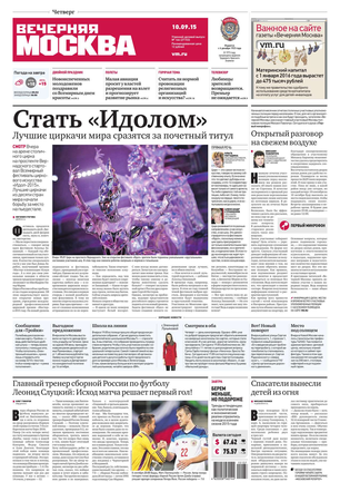 «Вечерняя Москва» — ежедневная российская вечерняя газета, старейшее из вечерних изданий в России, учрежденное в 1923 году. Выходит пять дней в неделю, кроме субботы и воскресенья. Отличается тем, что рассказывает о событиях еще не завершившегося дня. Оперативно освещает хронику и особенности жизни Москвы, охватывает все слои общества и большинство профессиональных и возрастных групп читателей.Издание представлено тремя выпусками – утренним ежедневным, вечерним (выходит три раза в неделю), еженедельным (выходит по четвергам).