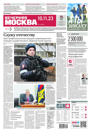 «Вечерняя Москва» — ежедневная российская вечерняя газета, старейшее из вечерних изданий в России, учрежденное в 1923 году. Выходит пять дней в неделю, кроме субботы и воскресенья. Отличается тем, что рассказывает о событиях еще не завершившегося дня. Оперативно освещает хронику и особенности жизни Москвы, охватывает все слои общества и большинство профессиональных и возрастных групп читателей.Издание представлено тремя выпусками – утренним ежедневным, вечерним (выходит три раза в неделю), еженедельным (выходит по четвергам).