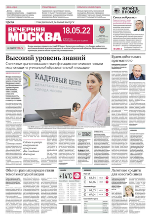 «Вечерняя Москва» — ежедневная российская вечерняя газета, старейшее из вечерних изданий в России, учрежденное в 1923 году. Выходит пять дней в неделю, кроме субботы и воскресенья. Отличается тем, что рассказывает о событиях еще не завершившегося дня. Оперативно освещает хронику и особенности жизни Москвы, охватывает все слои общества и большинство профессиональных и возрастных групп читателей.Издание представлено тремя выпусками – утренним ежедневным, вечерним (выходит три раза в неделю), еженедельным (выходит по четвергам).