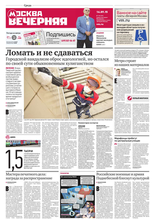 «Вечерняя Москва» — ежедневная российская вечерняя газета, старейшее из вечерних изданий в России, учрежденное в 1923 году. Выходит пять дней в неделю, кроме субботы и воскресенья. Отличается тем, что рассказывает о событиях еще не завершившегося дня. Оперативно освещает хронику и особенности жизни Москвы, охватывает все слои общества и большинство профессиональных и возрастных групп читателей.Издание представлено тремя выпусками – утренним ежедневным, вечерним (выходит три раза в неделю), еженедельным (выходит по четвергам).