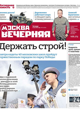 «Вечерняя Москва» — ежедневная российская вечерняя газета, старейшее из вечерних изданий в России, учрежденное в 1923 году. Выходит пять дней в неделю, кроме субботы и воскресенья. Отличается тем, что рассказывает о событиях еще не завершившегося дня. Оперативно освещает хронику и особенности жизни Москвы, охватывает все слои общества и большинство профессиональных и возрастных групп читателей.Издание представлено тремя выпусками – утренним ежедневным, вечерним (выходит три раза в неделю), еженедельным (выходит по четвергам).