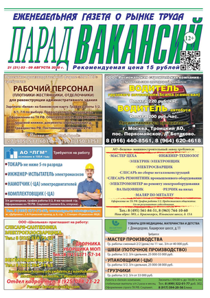 ЕЖЕНЕДЕЛЬНАЯ ГАЗЕТА О РЫНКЕ ТРУДА ПАРАД ВАКАНСИЙ