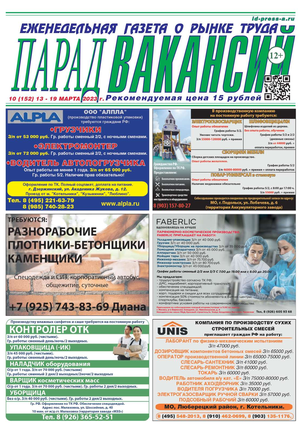 ЕЖЕНЕДЕЛЬНАЯ ГАЗЕТА О РЫНКЕ ТРУДА ПАРАД ВАКАНСИЙ