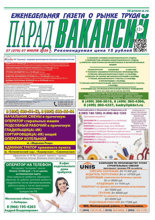 ЕЖЕНЕДЕЛЬНАЯ ГАЗЕТА О РЫНКЕ ТРУДА ПАРАД ВАКАНСИЙ