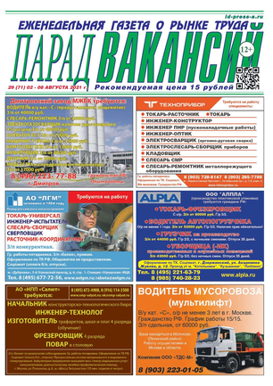 ЕЖЕНЕДЕЛЬНАЯ ГАЗЕТА О РЫНКЕ ТРУДА ПАРАД ВАКАНСИЙ