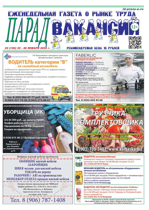 ЕЖЕНЕДЕЛЬНАЯ ГАЗЕТА О РЫНКЕ ТРУДА ПАРАД ВАКАНСИЙ