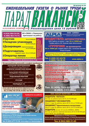 ЕЖЕНЕДЕЛЬНАЯ ГАЗЕТА О РЫНКЕ ТРУДА ПАРАД ВАКАНСИЙ