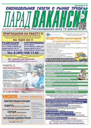 ЕЖЕНЕДЕЛЬНАЯ ГАЗЕТА О РЫНКЕ ТРУДА ПАРАД ВАКАНСИЙ