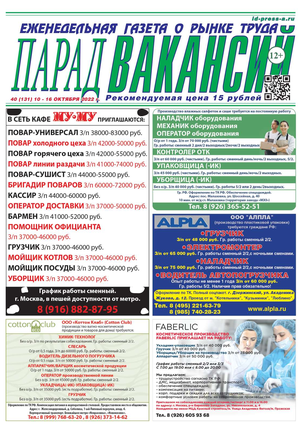ЕЖЕНЕДЕЛЬНАЯ ГАЗЕТА О РЫНКЕ ТРУДА ПАРАД ВАКАНСИЙ