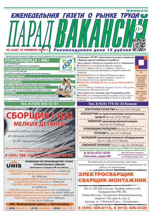 ЕЖЕНЕДЕЛЬНАЯ ГАЗЕТА О РЫНКЕ ТРУДА ПАРАД ВАКАНСИЙ