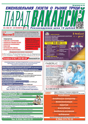 ЕЖЕНЕДЕЛЬНАЯ ГАЗЕТА О РЫНКЕ ТРУДА ПАРАД ВАКАНСИЙ