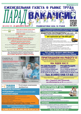 ЕЖЕНЕДЕЛЬНАЯ ГАЗЕТА О РЫНКЕ ТРУДА ПАРАД ВАКАНСИЙ