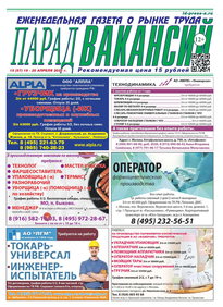 ЕЖЕНЕДЕЛЬНАЯ ГАЗЕТА О РЫНКЕ ТРУДА ПАРАД ВАКАНСИЙ (20 (62))