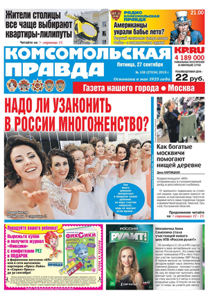 «Комсомольская правда» — информационная, общественно-политическая, развлекательная ежедневная газета, журналисты которой стараются быть интересными самому широкому кругу читателей. Безусловно, конек «КП» - скандальные репортажи, необычные истории из жизни, душераздирающие криминальные истории, светские новости, рассказы о звездах. Основные рубрики издания: «Картина дня», «Бизнес-пресс», «Клуб любознательных», «Кремлевская диета», «Мода», «КП-спорт», «Книжная полка», «Про рок», «Мнение», «Мужчина и женщина» и многое другое.