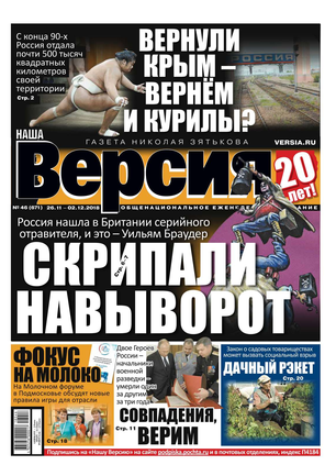 Общероссийская еженедельная газета «Наша Версия» сегодня - это один из ведущих еженедельников журналистских расследований – жесткий и информативный, остроумный и понятный.