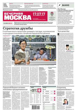 «Вечерняя Москва» — ежедневная российская вечерняя газета, старейшее из вечерних изданий в России, учрежденное в 1923 году. Выходит пять дней в неделю, кроме субботы и воскресенья. Отличается тем, что рассказывает о событиях еще не завершившегося дня. Оперативно освещает хронику и особенности жизни Москвы, охватывает все слои общества и большинство профессиональных и возрастных групп читателей.Издание представлено тремя выпусками – утренним ежедневным, вечерним (выходит три раза в неделю), еженедельным (выходит по четвергам).