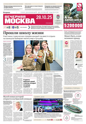 Вечером на страницах «Вечерки» появляются эксклюзивные интервью ньюсмейкеров культуры и шоу-бизнеса, репортажи журналистов по вечерней Москве, афиша нашего города. Один раз в неделю выходит специальный студенческий вечерний номер.