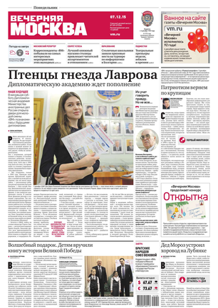 «Вечерняя Москва» — ежедневная российская вечерняя газета, старейшее из вечерних изданий в России, учрежденное в 1923 году. Выходит пять дней в неделю, кроме субботы и воскресенья. Отличается тем, что рассказывает о событиях еще не завершившегося дня. Оперативно освещает хронику и особенности жизни Москвы, охватывает все слои общества и большинство профессиональных и возрастных групп читателей.Издание представлено тремя выпусками – утренним ежедневным, вечерним (выходит три раза в неделю), еженедельным (выходит по четвергам).