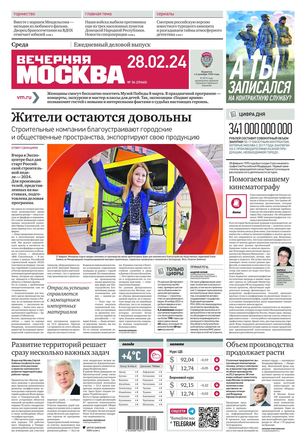 «Вечерняя Москва» — ежедневная российская вечерняя газета, старейшее из вечерних изданий в России, учрежденное в 1923 году. Выходит пять дней в неделю, кроме субботы и воскресенья. Отличается тем, что рассказывает о событиях еще не завершившегося дня. Оперативно освещает хронику и особенности жизни Москвы, охватывает все слои общества и большинство профессиональных и возрастных групп читателей.Издание представлено тремя выпусками – утренним ежедневным, вечерним (выходит три раза в неделю), еженедельным (выходит по четвергам).