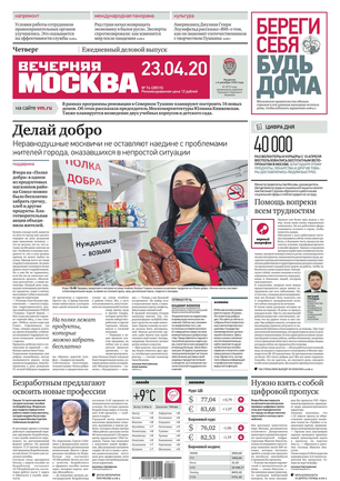 «Вечерняя Москва» — ежедневная российская вечерняя газета, старейшее из вечерних изданий в России, учрежденное в 1923 году. Выходит пять дней в неделю, кроме субботы и воскресенья. Отличается тем, что рассказывает о событиях еще не завершившегося дня. Оперативно освещает хронику и особенности жизни Москвы, охватывает все слои общества и большинство профессиональных и возрастных групп читателей.Издание представлено тремя выпусками – утренним ежедневным, вечерним (выходит три раза в неделю), еженедельным (выходит по четвергам).
