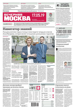 «Вечерняя Москва» — ежедневная российская вечерняя газета, старейшее из вечерних изданий в России, учрежденное в 1923 году. Выходит пять дней в неделю, кроме субботы и воскресенья. Отличается тем, что рассказывает о событиях еще не завершившегося дня. Оперативно освещает хронику и особенности жизни Москвы, охватывает все слои общества и большинство профессиональных и возрастных групп читателей.Издание представлено тремя выпусками – утренним ежедневным, вечерним (выходит три раза в неделю), еженедельным (выходит по четвергам).