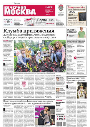 «Вечерняя Москва» — ежедневная российская вечерняя газета, старейшее из вечерних изданий в России, учрежденное в 1923 году. Выходит пять дней в неделю, кроме субботы и воскресенья. Отличается тем, что рассказывает о событиях еще не завершившегося дня. Оперативно освещает хронику и особенности жизни Москвы, охватывает все слои общества и большинство профессиональных и возрастных групп читателей.Издание представлено тремя выпусками – утренним ежедневным, вечерним (выходит три раза в неделю), еженедельным (выходит по четвергам).