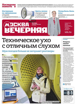 «Вечерняя Москва» — ежедневная российская вечерняя газета, старейшее из вечерних изданий в России, учрежденное в 1923 году. Выходит пять дней в неделю, кроме субботы и воскресенья. Отличается тем, что рассказывает о событиях еще не завершившегося дня. Оперативно освещает хронику и особенности жизни Москвы, охватывает все слои общества и большинство профессиональных и возрастных групп читателей.Издание представлено тремя выпусками – утренним ежедневным, вечерним (выходит три раза в неделю), еженедельным (выходит по четвергам).