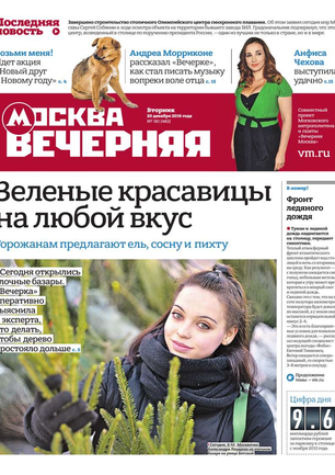 «Вечерняя Москва» — ежедневная российская вечерняя газета, старейшее из вечерних изданий в России, учрежденное в 1923 году. Выходит пять дней в неделю, кроме субботы и воскресенья. Отличается тем, что рассказывает о событиях еще не завершившегося дня. Оперативно освещает хронику и особенности жизни Москвы, охватывает все слои общества и большинство профессиональных и возрастных групп читателей.Издание представлено тремя выпусками – утренним ежедневным, вечерним (выходит три раза в неделю), еженедельным (выходит по четвергам).