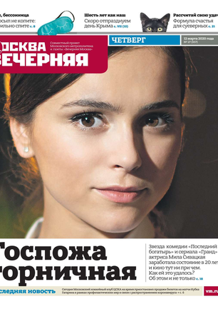 Вечером на страницах «Вечерки» появляются эксклюзивные интервью ньюсмейкеров культуры и шоу-бизнеса, репортажи журналистов по вечерней Москве, афиша нашего города. Один раз в неделю выходит специальный студенческий вечерний номер.