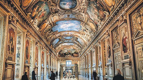 Созданная в XVII веке для Людовика XIV Галерея Аполлона — одно из самых знаменитых помещений Лувра. После пожара 1661 года ее перестраивали Луи Лево и Шарль Лебрен, а почти 200 лет спустя оформление потолков завершил Эжен Делакруа. 41 живописная композиция, 36 скульптурных групп и 28 шпалер мануфактуры Гобеленов рассказывают здесь миф об Аполлоне и прославляют «короля-солнце». Именно в этом зале в 1884 году впервые представили публике собрание королевских драгоценностей.