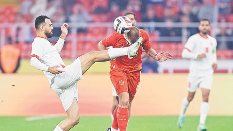 Впрочем, в дебюте проявили себя не они и не кто-то другой из группы атаки, а голкипер Максименко. Наши «обрезались» при розыгрыше от собственной штрафной, и голкиперу пришлось спасать после выхода один на один Али Ольвана — автора хет-трика в ворота Омана, который открыл Иордании дорогу на ЧМ-2026. Еще один момент упустил лишь размявший Максименко несильным ударом капитан и самый яркий игрок гостей Аль-Тамари.