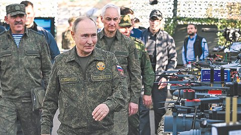 Верховный главнокомандующий был одет в полевой комплект формы без погон, с нашивками "Президент РФ" и "Путин В. В.", а также шевронами с триколором и двуглавым орлом. Президента на полигоне "Мулино" сопровождали глава Минобороны Андрей Белоусов, помощник президента, секретарь Госсовета Алексей Дюмин и замминистра обороны Юнус-Бек Евкуров.