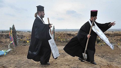 После службы, которую вместе отслужили священники разных конфессий, процессия отправилась на Краснопольское кладбище на выезде из Днепропетровска в сторону Кривого Рога. Здесь под захоронения неопознанных военных выделен отдельный участок: 74 человека уже похоронили, в субботу попрощаются еще с 21 погибшим. Судя по количеству вырытых, но пока пустых могил, кладбище — где на табличках лишь реестровый номер, присваиваемый каждому умершему, и одинаковая надпись "Временно не установленный защитник Украины" — готово принять до 500 человек.